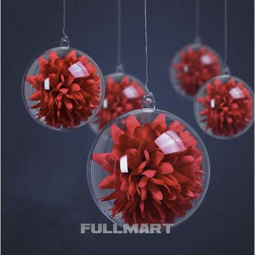 - СКЛАДАНИЕ ПО ПОЛОВИНЕ - фенечка складывается пополам, поэтому внутрь можно положить красивые украшения, например, перья, блестки, мох, искусственный снег, ленты или конфетти. Также можно сделать сладкую безделушку, всего несколько конфет и все готово. Шары также можно покрасить изнутри или снаружи.