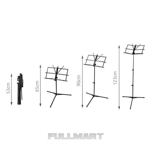 Металлический пюпитр с порошковой покраской. Он имеет трехножку и регулируемую высоту. Рабочий стол складной. Штатив рекомендуется как профессионалам, так и любителям.
