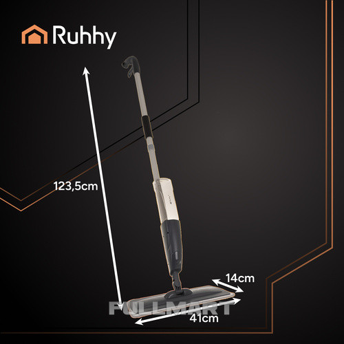 Компактна та проста у використанні швабра RUHHY дозволяє швидко мити підлогу без необхідності використання ведра – просто натисніть на курок, щоб розпорошити засіб на поверхню, і відразу ж протріти її мікрофіброю
