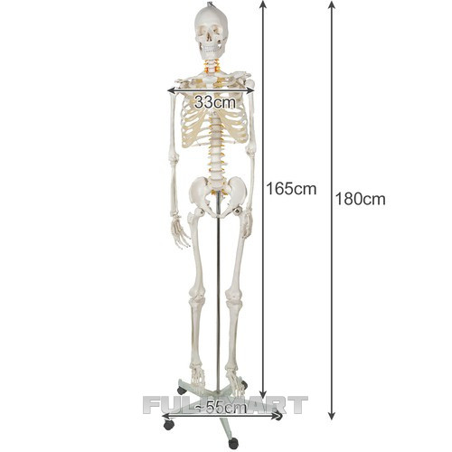 - РАЗМЕР 1:1 ПОСТАВЛЕН НА ПОДСТАВКУ С КОЛЕСАМИ + КРЫШКА - наш скелет очень большой. Его размер составляет целых 165 см, а с подставкой – 180 см. Что на самом деле дает нам реальный человеческий рост . Дополнительным преимуществом являются колеса на подставке, благодаря которым вы можете свободно передвигаться. переместите скелет куда угодно . В комплект входит: также пыльник .