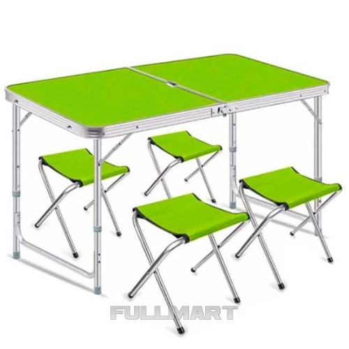 Особливістю даного розкладного столу є висувні ніжки, які фіксуються спеціальними кнопками-засувками У складеному вигляді стіл перетворюється на валізку з ручкою, легкий і практичний. Покриття стільниці - меламін, який має водовідштовхувальні властивості і стійкий до різного роду механічних пошкоджень: подряпин, сколів і т.д.