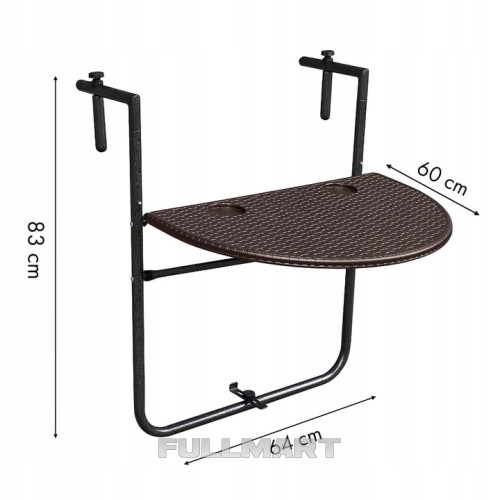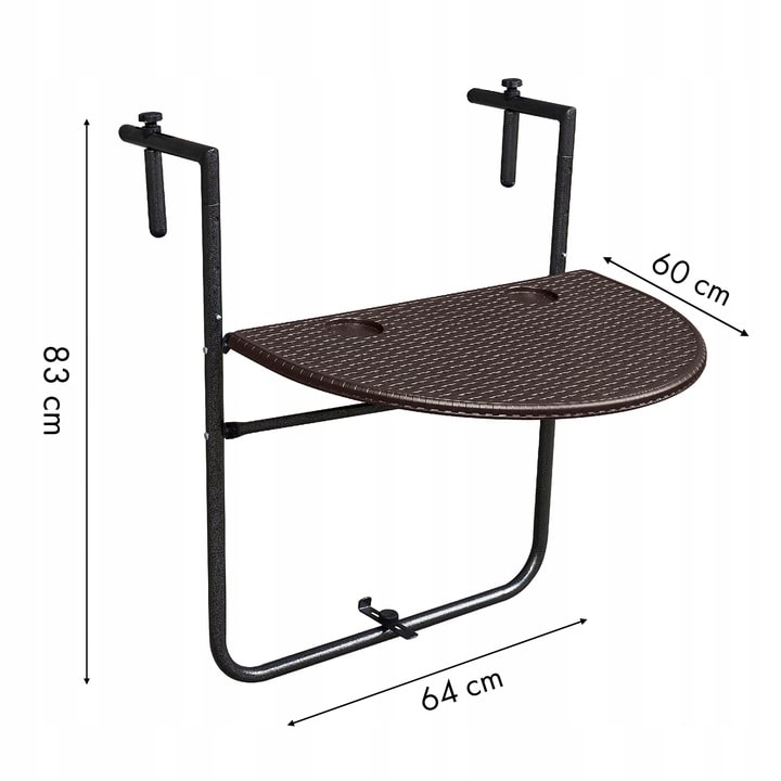 - Напівкруглий балконний столик, підвісний, коричневий, 64 x 60 x 83 см.