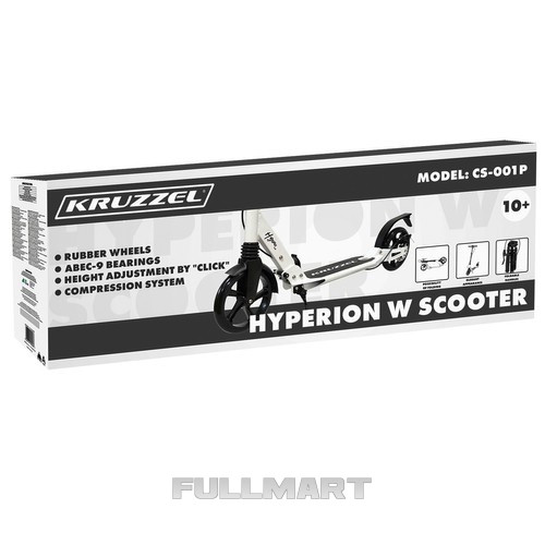 СПЕЦИФИКАЦИЯ - цвет: черно-белый; материал: алюминий + резина; 2 тормоза: дисковые и подкрылковые; колеса: резина; подшипники: ABEC-9; нога: да; отражатель: на заднем крыле; диаметр колеса: 20 см; размеры: 97 х 37 х 105 см; размеры платформы: 37 х 14 см; регулировка высоты: от 90 до 105 см; вес: 6,5 кг; вес в упаковке: 7 кг.
