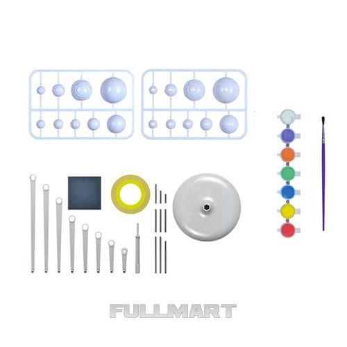 Цей унікальний набір дозволить вашій дитині самостійно створити справжню модель нашої сонячної системи . У комплект іграшки входить: шаблон з 8 планетами , підставка, фарби 7 кольорів, пензлик та невеликий складальний набір у вигляді металевих дротів , на які кріпляться кульки. Збирається дуже легко і швидко, тому ваша дитина зможе зробити всю модель самостійно.