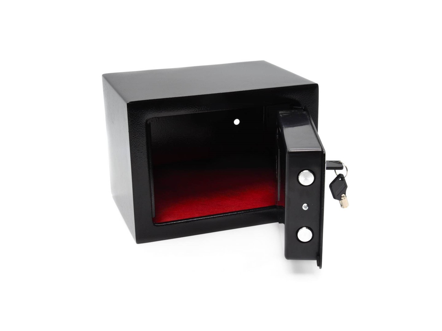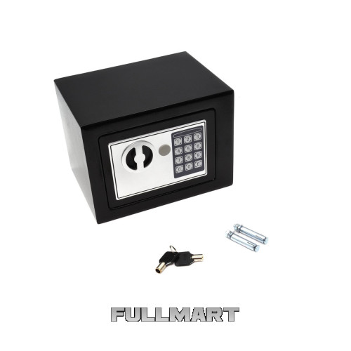 Сейф Malatec 22627 призначений для надійного зберігання цінностей, документів, ювелірних виробів та інших важливих предметів. Оснащений електронним замком із можливістю встановлення індивідуального коду, що забезпечує високий рівень безпеки. У разі розряджання батарей або втрати коду передбачений аварійний доступ за допомогою ключа. Компактні розміри (21x17x17 см) дозволяють розмістити сейф у зручному місці будинку чи офісу. Корпус виготовлений із міцної сталі, що забезпечує захист від злому. В комплект входять елементи кріплення для надійної фіксації сейфа до стіни або підлоги. Сейф оснащений світлодіодними індикаторами, що сигналізують про стан батареї та правильність введення коду. Живлення здійснюється від чотирьох батарейок типу AA. Вага сейфа становить 2,8 кг.