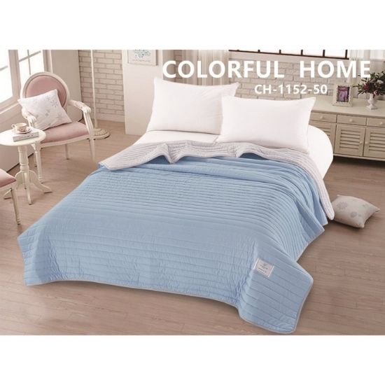 Плед-покривало стьобане приємне на дотик. Оболонка з обох боків виготовлена з бавовняної тканини, а між ними - наповнювач з поліефірного волокна, що забезпечує відповідну товщину. Полотно прошивається крізь стібки, створюючи опуклий візерунок стьобаної покривала. Полотно еластичне, має високу міцність, повітропроникне і чудово зберігає тепло. Має легку вагу і чудово піддається як ручному, так і машинному пранню в делікатному режимі. Швидко сохне і змінює початкової своєї форми.