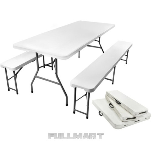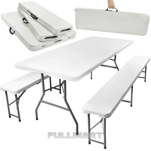 Стіл із лавками – розкладний набір садової меблів – ідеальне рішення для всіх вечірок та заходів на природі. Він надзвичайно практичний та зручний. У нього міцна конструкція та товстий верх – все це стійке до несприятливих погодних умов. Досить кількох простих кроків, щоб створити ідеальний куточок громадського харчування у вашому саду, який ідеально підійде для фестивалів, великих заходів та барбекю.