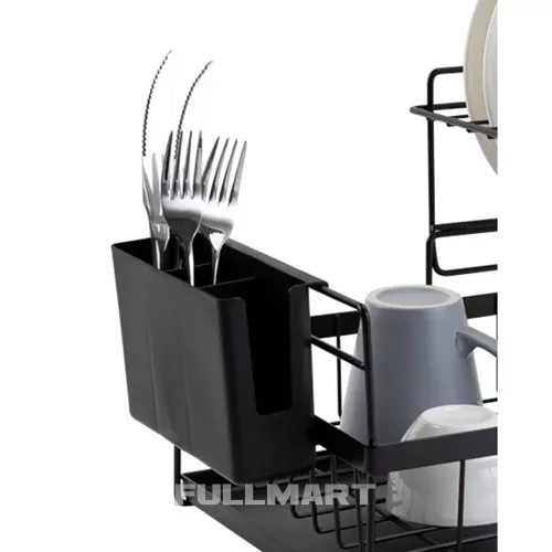 - ПІДНОС ДЛЯ СТОЛОВИХ ПРИЛАДІВ – дворівнева сушарка для посуду також оснащена практичним контейнером для столових приладів. Поділ на 2 відділення дозволяє легко сортувати ложки, виделки та ножі. Виріб полегшує підтримання порядку на кухні.