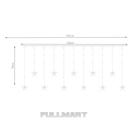 - длина светящейся шторы: 250см;