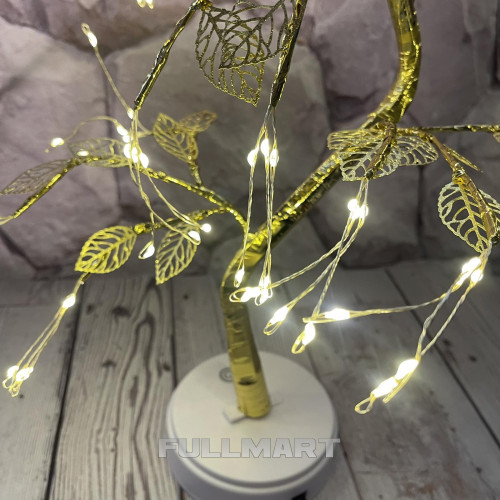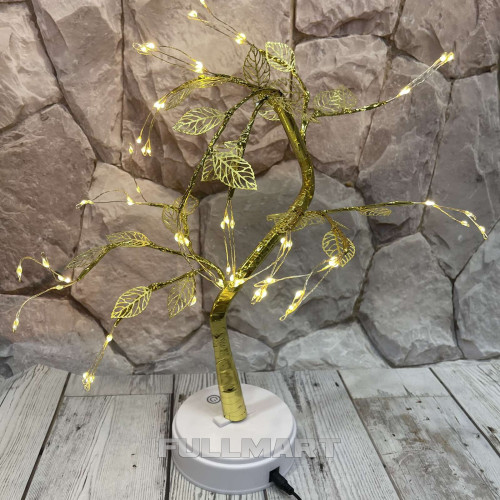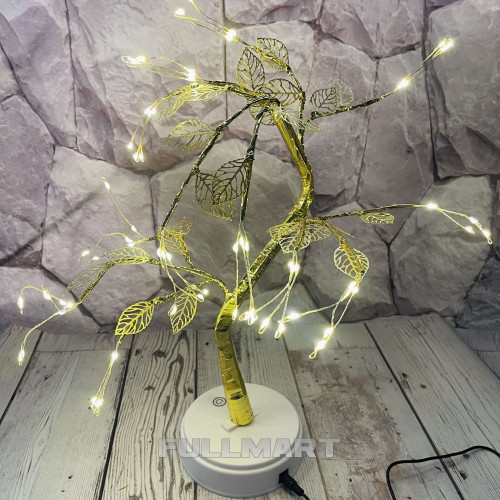 Світлодіодне дерево-світильник прикрасить Вашу оселю, додасть святкового настрою. Дерево має гнучкий стовбур та гілки золотого кольору з тепло білими світлодіодами. Висота декоративного дерева-гірлянди 50 см.