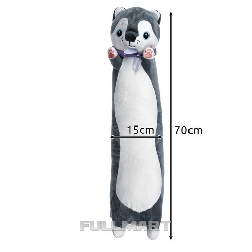 очень длинный - талисман был создан, чтобы быть идеальным И как мягкая игрушка, и как удобная подушка для сна. его длина обеспечивает дополнительный комфорт и возможность использовать его по-разному.