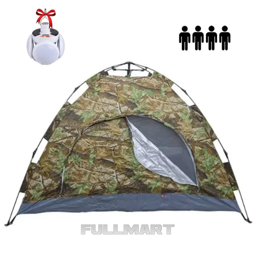 Туристична палатка автомат 4-місна 200х200х145см камуфляж + Подарунок: Кемпінговий ліхтар BL-2029-1