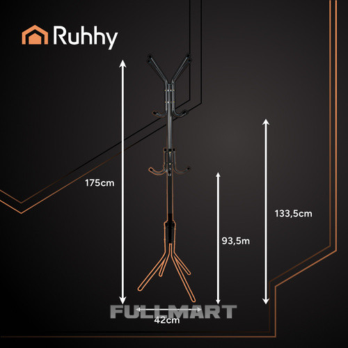 Вішалка RUHHY - практичне та елегантне рішення, яке чудово впишеться в будь-який інтер'єр - з передпокою, через спальню, в кабінет або приймальню . Завдяки трьом рівням підвішування та стійкій конструкції стійка дозволяє зручно зберігати пальто, куртки, шарфи, сумки та толстовки. - навіть без петель. Окремо стоїть і портативний , він не вимагає настінного монтажу або спеціальних інструментів. Відмінний вибір для тих, хто цінує функціональність, мобільність та естетика .