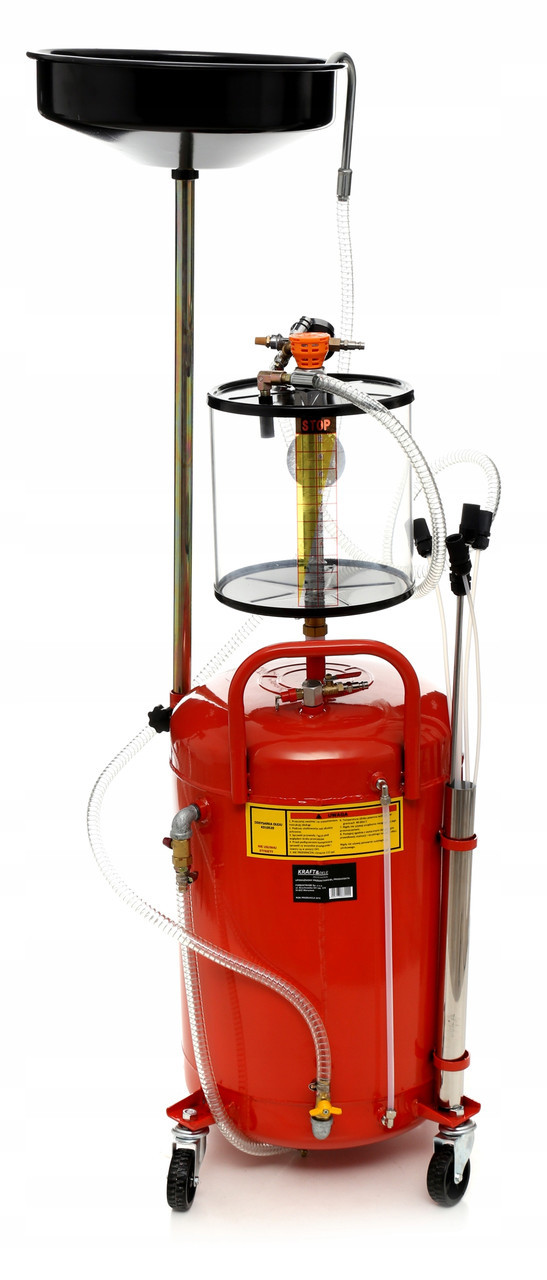 Установка для зливу та вакуумного відкачування оливи Kraft & Dele KD10520 — — це пристрій, призначений для видалення оливи з двигунів і коробок передач автомобілів. Система обладнана пневматичним вакуумним насосом і регульованим баком. Максимальний вакуум, що досягається насосом, становить 1 бар. Максимальна температура оливи не має перевищувати 60 °C.