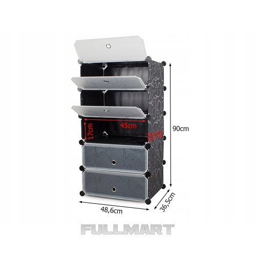 Модульна поліця для взуття ідеально впишеться у ваш будинок у туалет або прихожу. Він також добре працюватиме в компанії або офісі. Крім того, шафа має дуже естетичний дизайн із приємним малюнком, тому впишеться в образ будь-якої квартири. Крім взуття, у шафі можна зберігати одяг, а також різні види підручних промов.