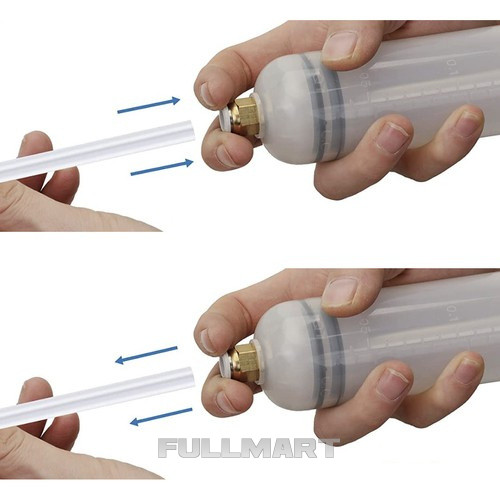 - ДВА ШЛАНГИ + ЗАГЛУШКИ В КОМПЛЕКТІ - аспіраційна машина оснащена 2 спеціальними гнуткими шлангами завдовжки 215 мм і 225 мм, діаметром 6 мм і 4 мм , які вставляються в маслозаливний отвір. Таким чином, ви зможете дістатися практично до шкірного резервуара та розширити робочу ємність шприца. Крім того, шланги забезпечені заглушками, що запобігають виливанню вмісту.