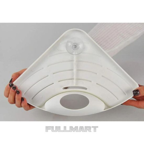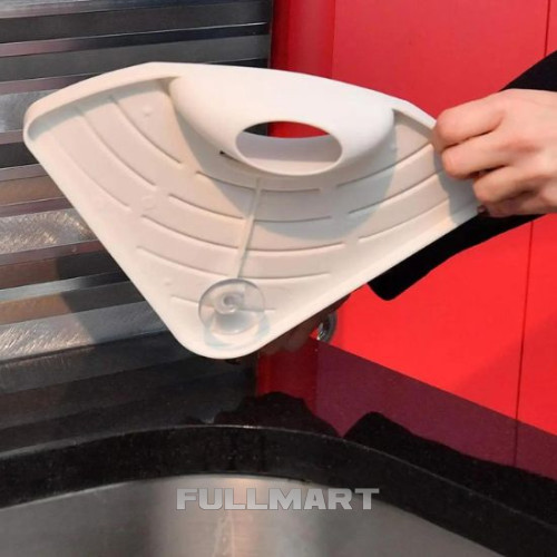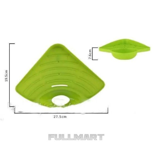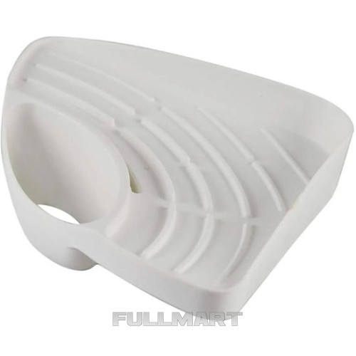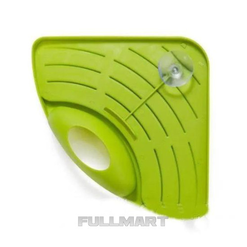 Внутренняя рифленая поверхность не позволяет предметам скользить и уводить лишнюю воду. Силиконовая присоска надежно удерживает угловой органайзер для кухонной раковины.
