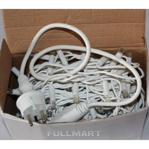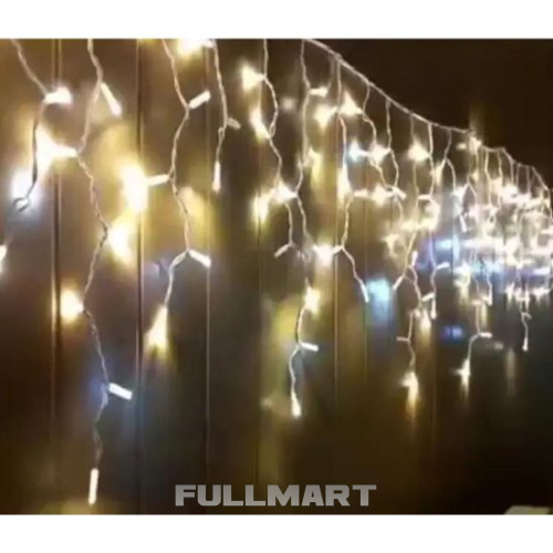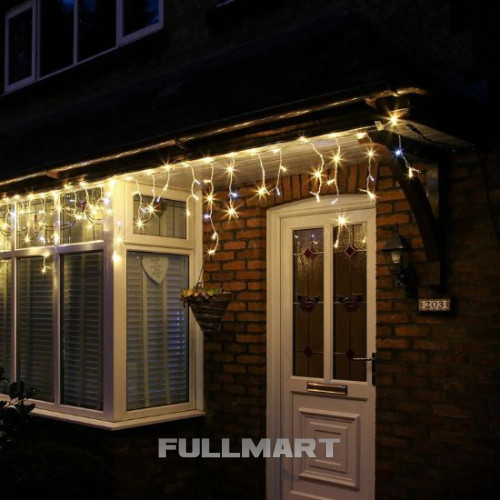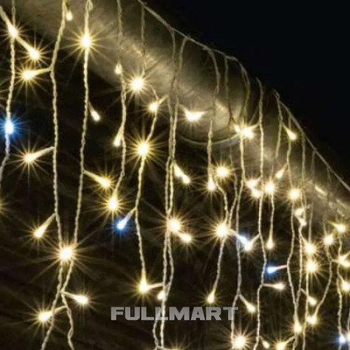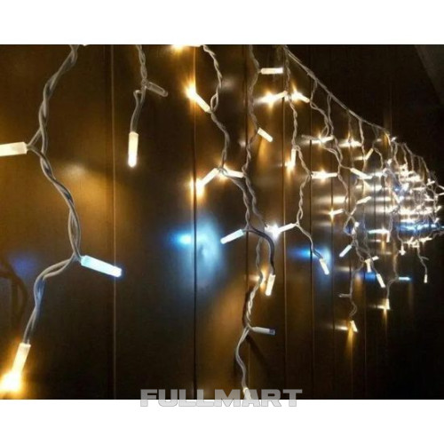 Тепло-белая гирлянда с мерцанием светодиодная гирлянда – бахрома на белом каучуковом проводе, уличная. Есть соединение для увеличения длины гирлянды.