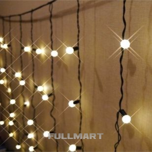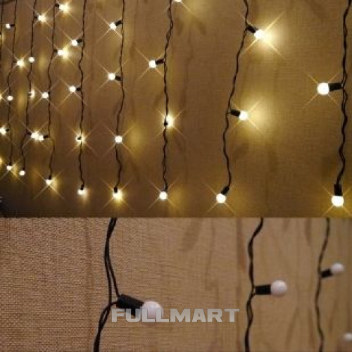 Гирлянда штора из шариков с тепло белым свечением на черном каучуковом кабеле выдерживает сильные морозы и перепады температур. Максимальная степень защиты от влаги позволяет её использовать, как снаружи так и внутри помещения.Гирлянда представляет собой основной 3-х метровый чёрный провод на котором свисают подвески длиной 80 см. с шариками.Диметр шарика 1,8 см.Гирлянда украсит, окно, балкон, козырёк крыши любого здания, придаст им неповторимый вид и яркий насыщенный тон.