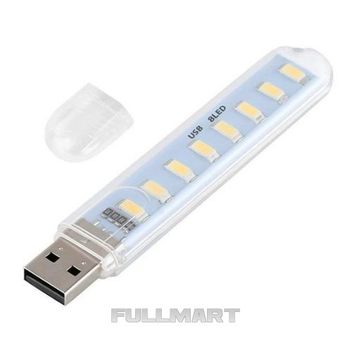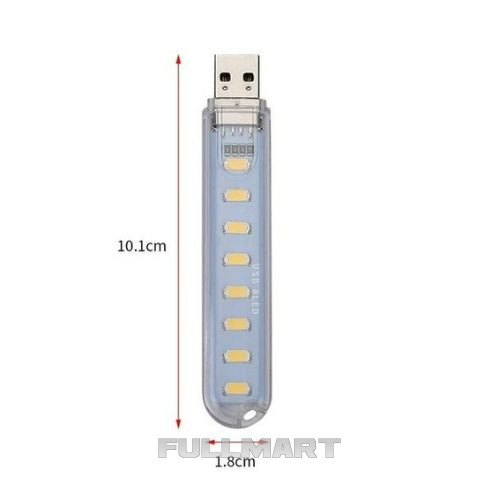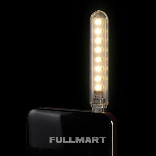 Мини фонарик, USB светильник на 8 светодиодов, можно носить как простой брелок для ключей. Свет теплый желтый. Можно использовать для чтения, при ходьбе, в походах или при других занятиях. Потребляемая мощность лампы составляет 4 Вт, что дает полноценное ощущение освещения.