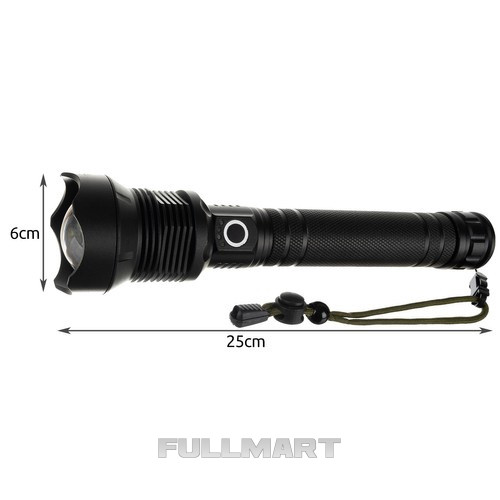 - СПЕЦИФИКАЦИЯ - материал: алюминий + материал корпуса: ПП, остальные: пенопласт; длина светового потока: 500 м; диод П70; 3 режима освещения; аккумулятор: 2 х 26650 мАч; мощность: 4500 люмен; размеры: 25 х 6 см; вес: 0,504 кг; вес в упаковке: 0,700 кг.