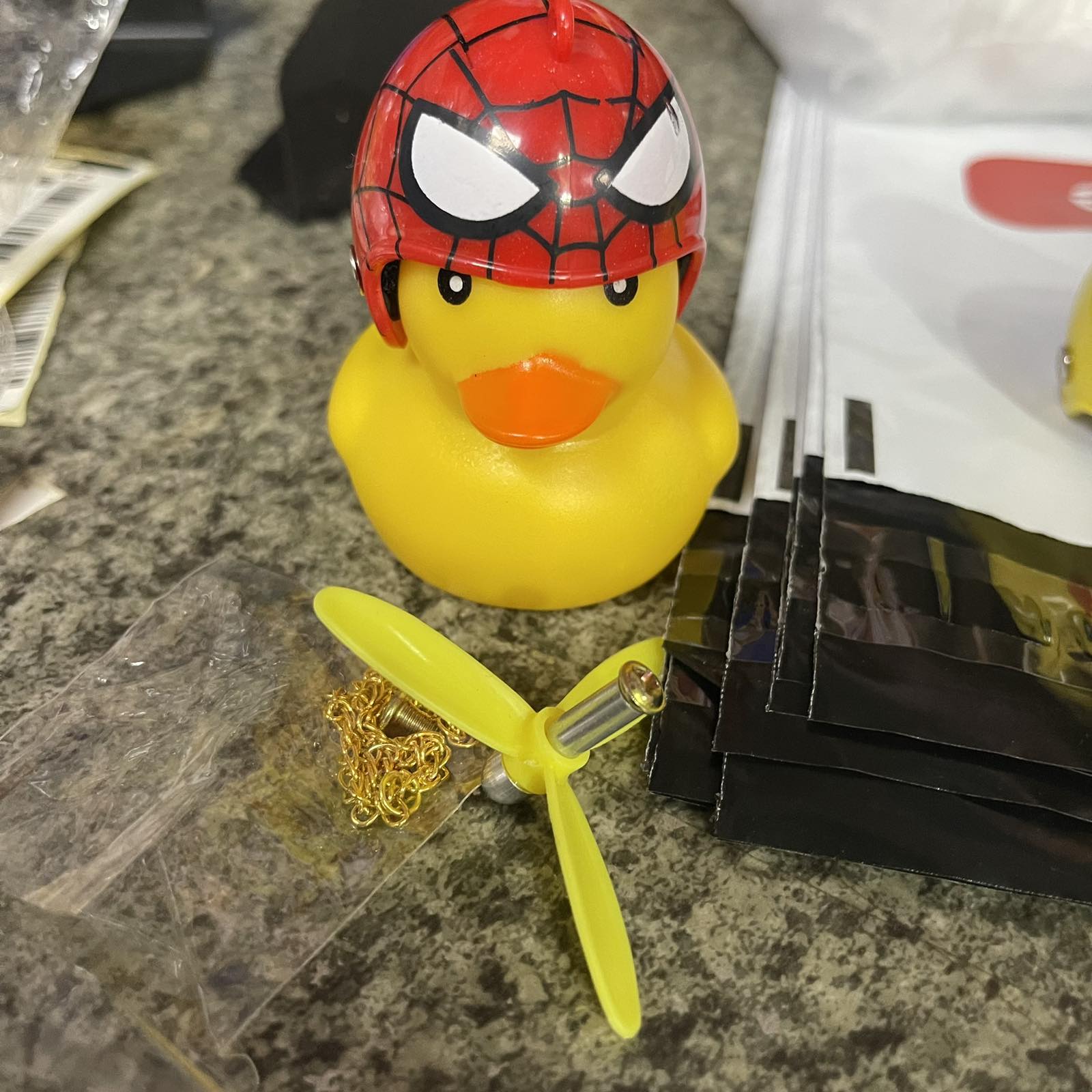 Велосипедный звонок в виде милой уточки в шлеме. Станет вашим надежным другом во время езды на велосипеде или на другом транспортном средстве. Активно притягивает взгляды прохожих, а так же вызывает у них желание обзавестись таким другом. Встроенная подсветка обеспечивает дополнительную видимость в темное время суток. Издает характерный звук при нажатии на уточку (альтернатива велосипедному звонку). Пропеллер электричество не вырабатывает, но забавно вращается от встречного потока воздуха.