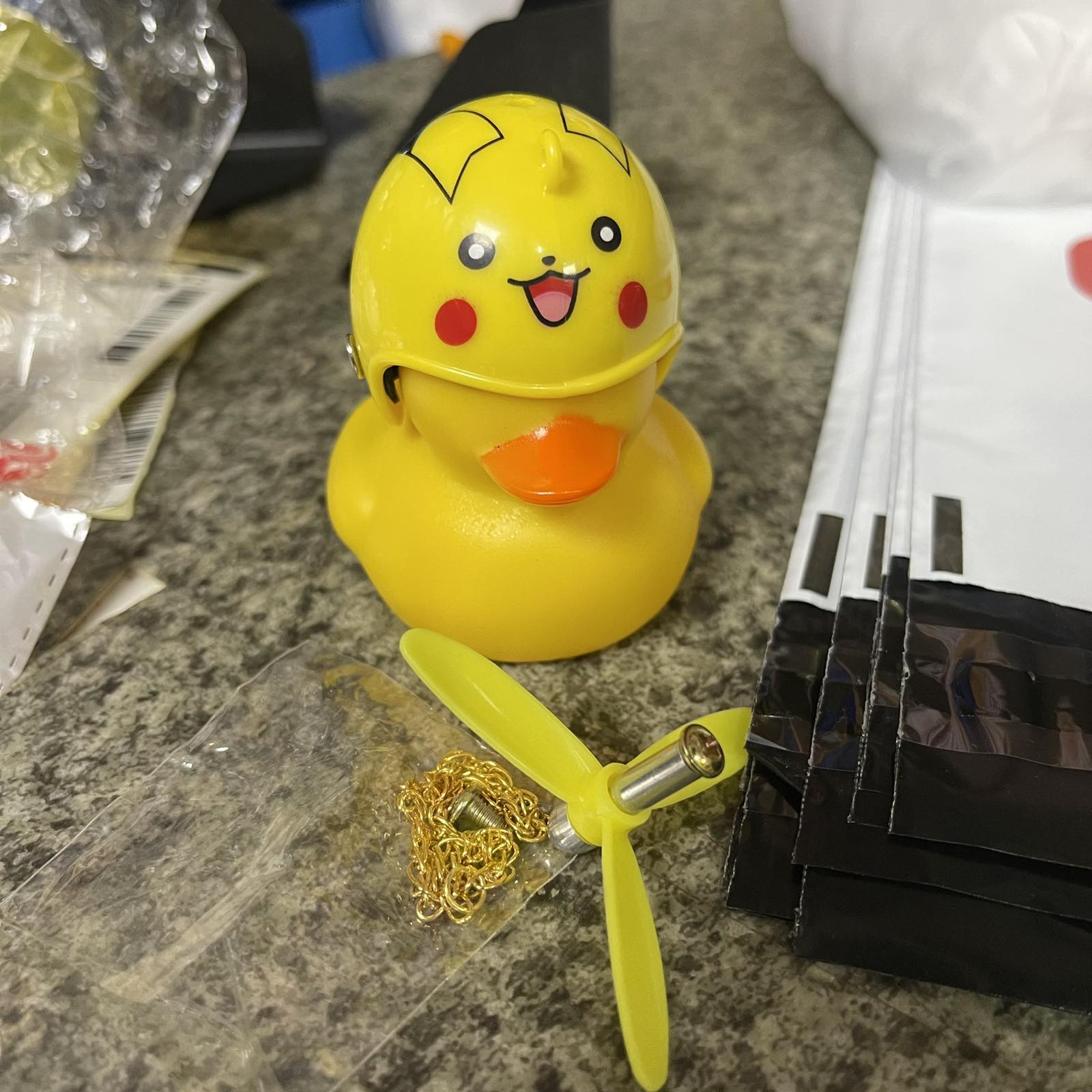 Велосипедный звонок в виде милой уточки в шлеме. Станет вашим надежным другом во время езды на велосипеде или на другом транспортном средстве. Активно притягивает взгляды прохожих, а так же вызывает у них желание обзавестись таким другом. Встроенная подсветка обеспечивает дополнительную видимость в темное время суток. Издает характерный звук при нажатии на уточку (альтернатива велосипедному звонку). Пропеллер электричество не вырабатывает, но забавно вращается от встречного потока воздуха.