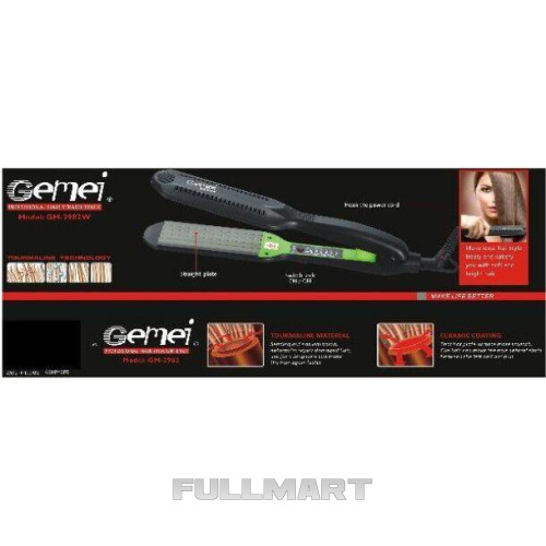 Плойка для волос Gemei GM-2907 позволит создать множество различных причесок. Имеет керамическое покрытие и быстрый нагрев. Есть кнопка включения и выключения, а также сетевой индикатор работы.Для удобства использования оснащена металлической откидной подставкой для разогретого прибора, а также вращающимся сетевым шнуром.