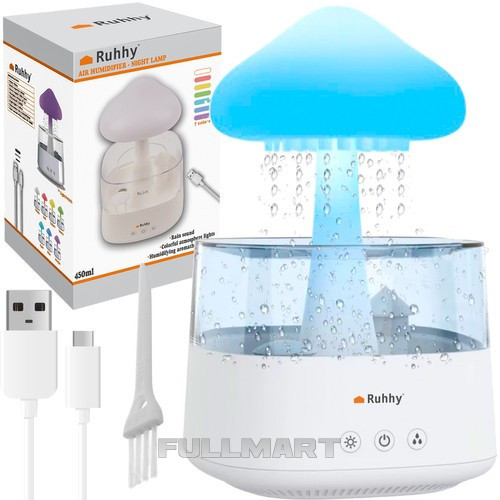 - ПРОСТОТА ИСПОЛЬЗОВАНИЯ И ДОПОЛНИТЕЛЬНЫЕ АКСЕССУАРЫ - работа увлажнителя интуитивно понятна Спасибо три кнопки, расположенные на передней панели устройства . Эти кнопки отвечают за регулировку освещения, включение и выключение устройства, а также настройку интенсивности дождя и производимого пара. Средняя кнопка, помимо функции включения , имеет дополнительная возможность включения света на 5 часов , после чего прибор автоматически перестает работать. В В комплект поставки увлажнителя входит кабель типа C , который позволяет удобно подключить увлажнитель к электросети. проволока для разблокировки каналов и маленькая щетка для чистки загрязнений, что облегчает поддержание устройства в чистоте и продлевает срок его службы.