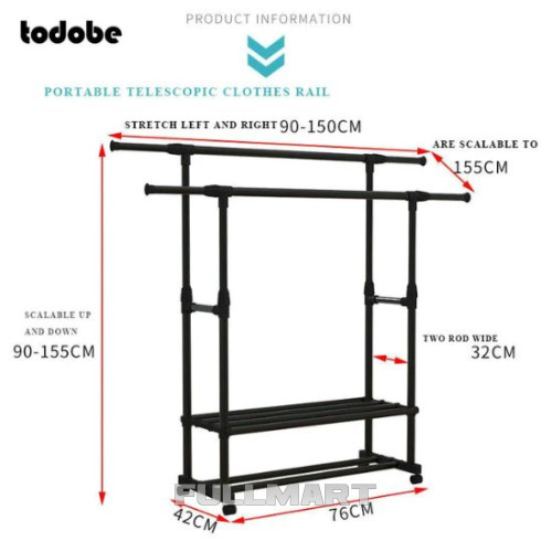 Вешалка Double Pole(30 кг) напольная для одежды двойная телескопическая Удобная и достаточно большая стойка для одежды Double Pole Clother Hose.