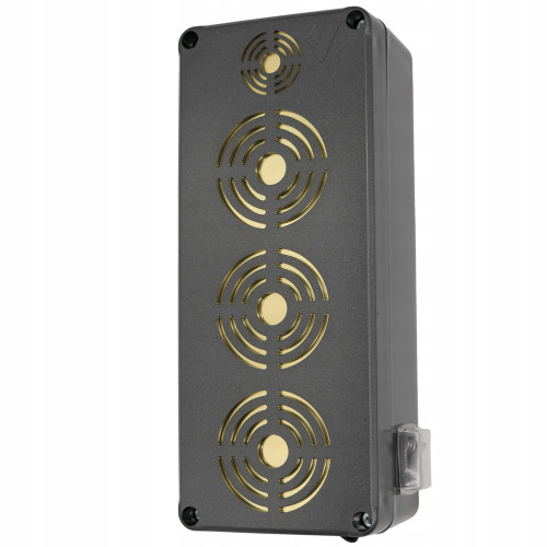 Пристрій оснащений чотирма п'єзоелектричними динаміками – три діаметром 50 мм та один діаметром 35 мм. Все це доповнюється герметичним корпусом із класом герметичності IP65, що дозволяє використовувати відлякувач як у приміщенні, так і на вулиці. Польський прилад розроблений для кліматичних умов нашої країни – він стійкий до сонячних променів, дощу, морозу та вітру.