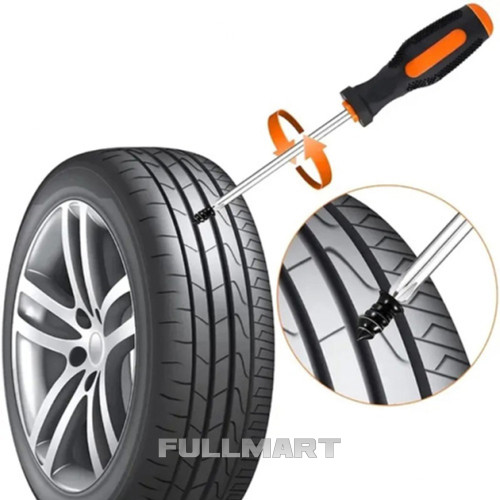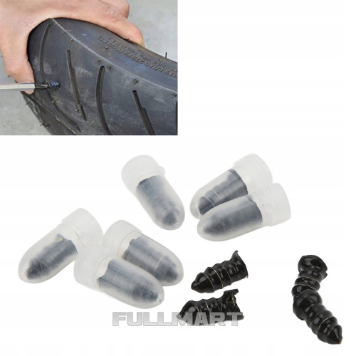 Набор из 10 вулканизирующих саморезов позволит устранить последствия прокола колеса на дороге. Представляют собой саморезы, которые покрыты резиной с высоким уровнем твердости, термо- и износоустойчивости. Шлиц самореза рассчитан под отвертку с крестообразным жалом, которая имеется в машине практически у всех водителей. Достаточно найти прокол на колесе и вкрутить саморез в место прокола, чтобы устранить повреждение покрышки и доехать до ближайшего шиномонтажа.