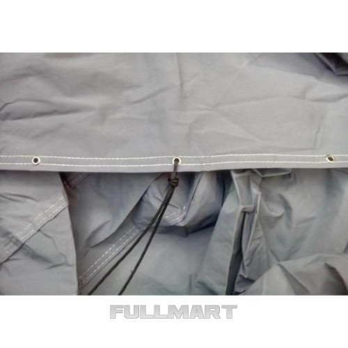 Мягкая подкладка защитит лакокрасочное покрытие вашего автомобиля от царапин. Также она будет амортизировать при падении града на автомобиль. На тенте есть "уши" для зеркал. По переднему и заднему бамперу вшиты фиксирующие резинки.