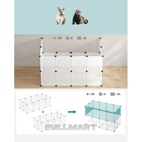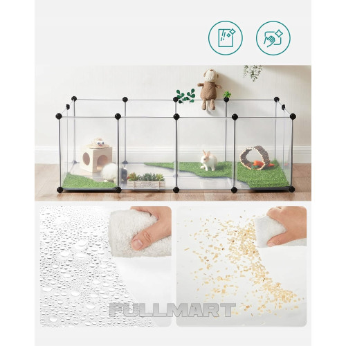 Этот вольер обеспечивает морским свинкам, хомякам, ежам и кроликам большое пространство для игр, исследований и развлечений. Гладкие панели размером 45 x 35 см и 35 x 35 см защищают их лапы и предотвращают побег.